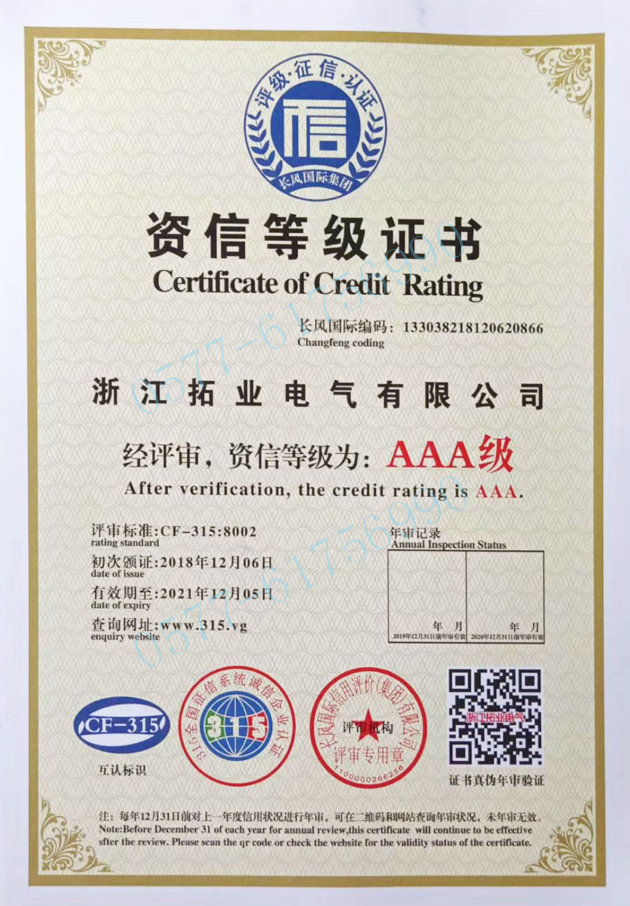 • 拓業電氣公司認為為國家、為社會、為客戶創造價值就是我們的存在價值。更管用、更耐用、更安全、更可靠,是我們質量管理的基本原則,我們通過努力為合作伙伴創造價值,才能體現自身的價值并獲得發展和成功......